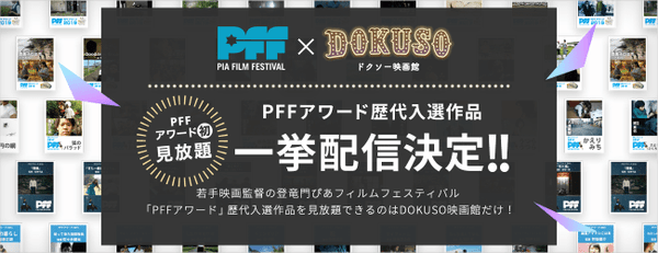 インディーズ映画に特化した⽉額定額観放題サービス『DOKUSO映画館』(ドクソ―エイガカン)を提供する、株式会社DOKUSO映画館(本社:東京都豊島区、代表取締役:⽟井雄⼤)は、若手映画監督の登竜門ともいわれる映画祭「ぴあフィルムフェスティバル」が行う自主映画コンペティション「PFFアワード」の歴代入選作品を一挙配信することを決定しました。