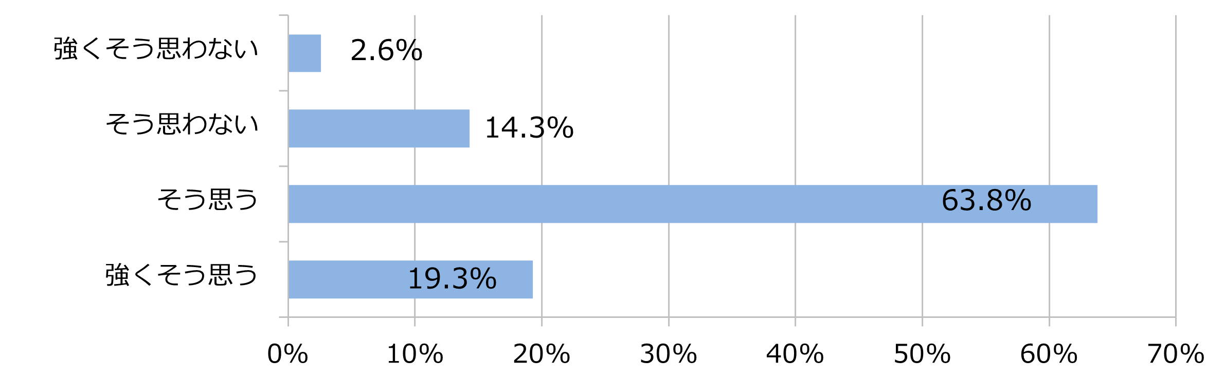 1. 「周囲と比べて自分は交通ルールを守っており自転車の安全運転ができている」かの設問に対して「強くそう思う」と「そう思う」の回答の合計は83.1%であった。(図1)