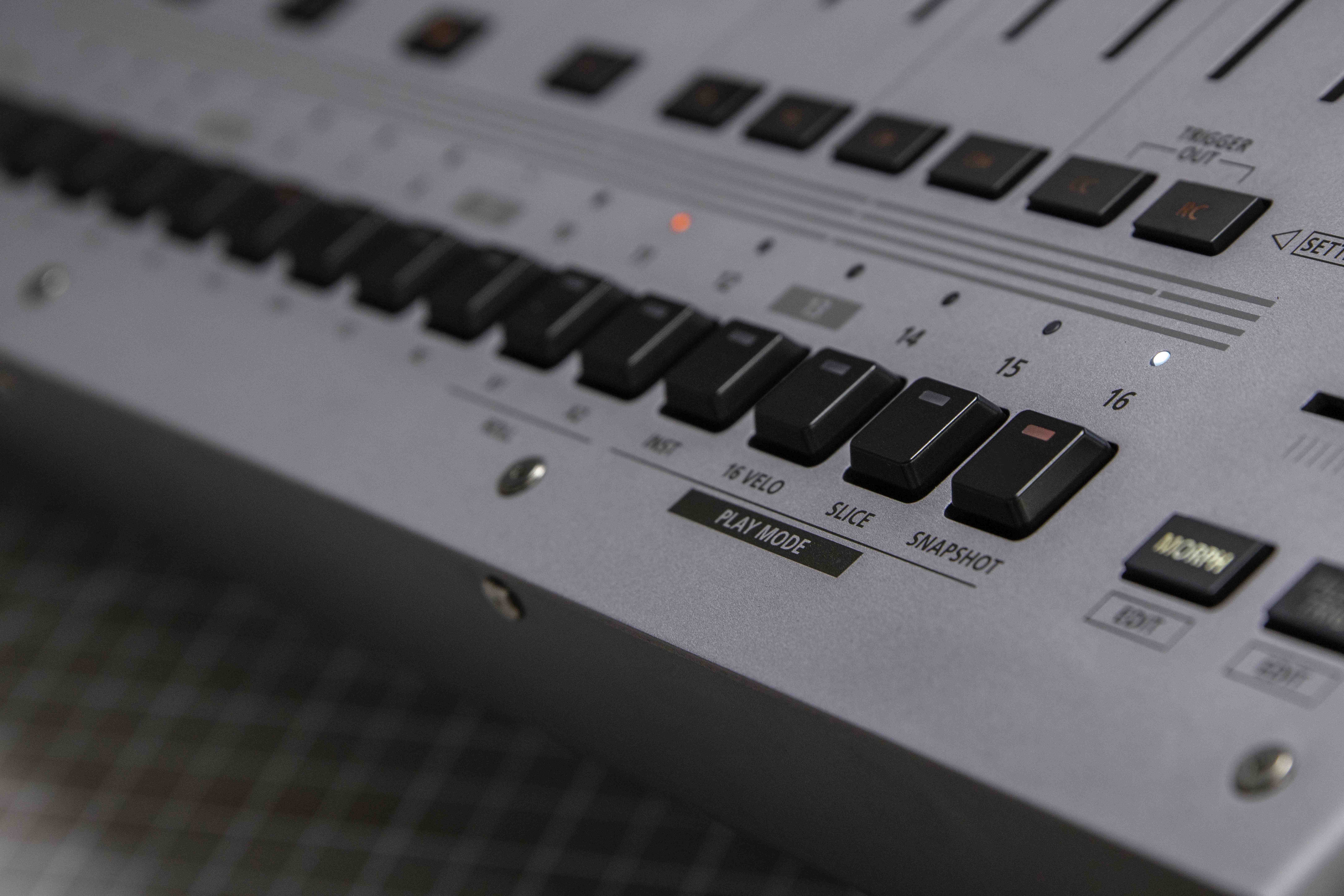耐久性の高いRGBライト付きのステップ・キーは、打ち込みやサウンド・コントロールなど、状況に応じて機能が変化します。「TR-REC」ステップ入力、リアルタイム演奏、16段階ベロシティによるダイナミクス、サンプル・スライスなど、幅広い用途に対応します。