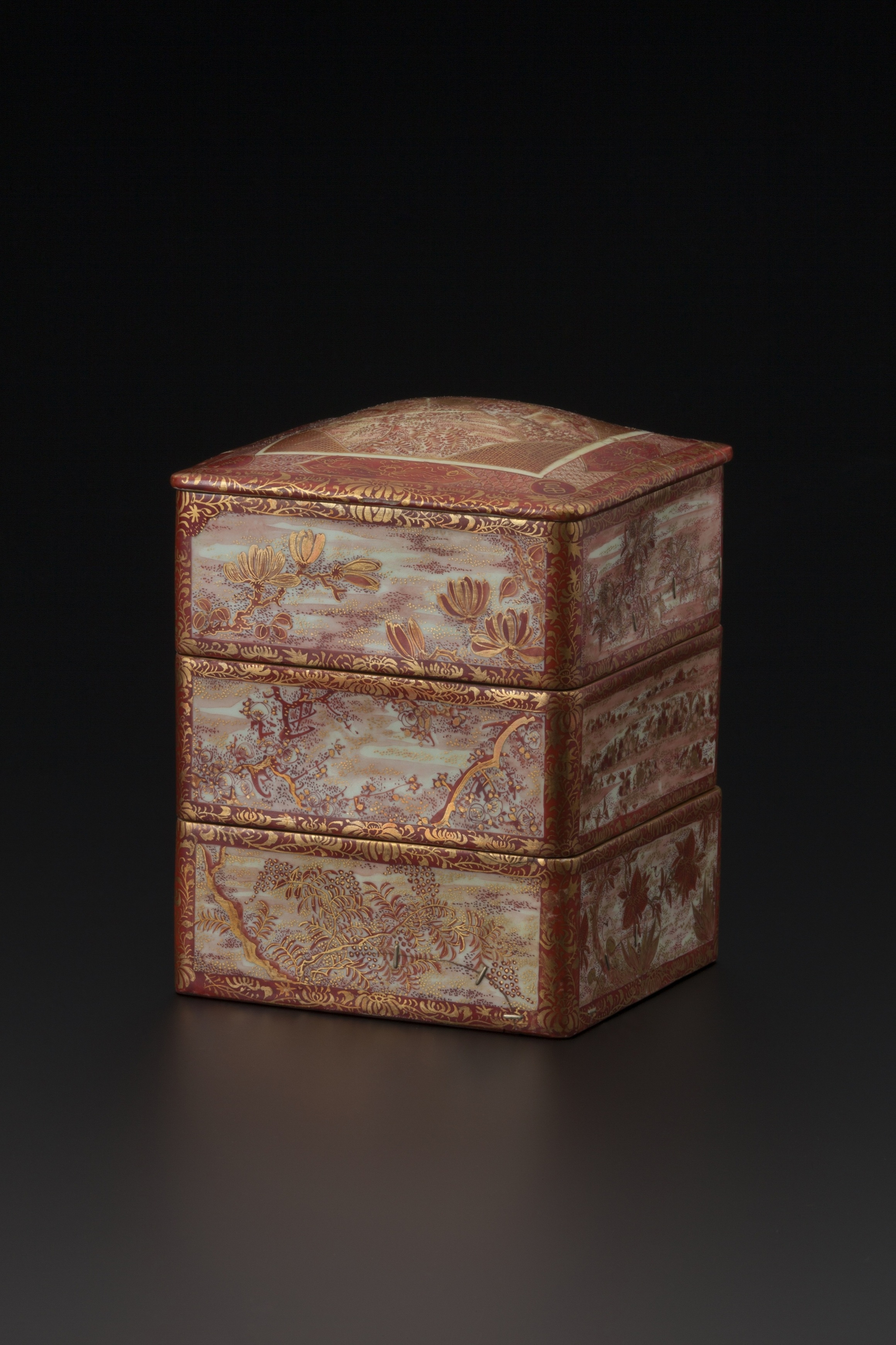 (11)湖東焼 幸斎絵付け≪花卉図三段重≫嘉永5(1852)年頃 個人蔵