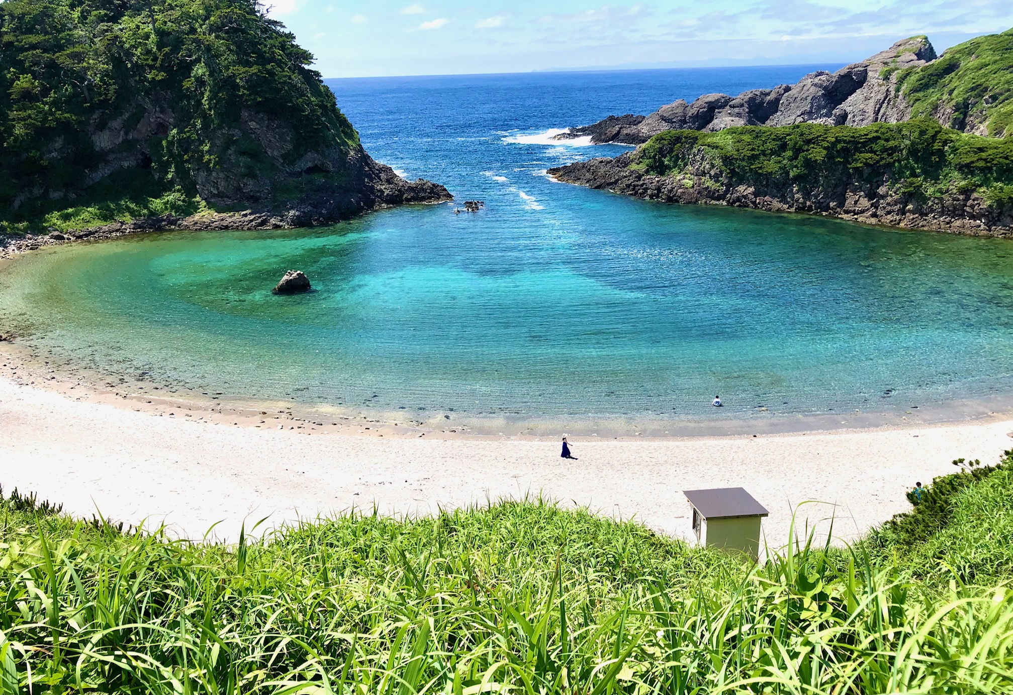 式根島(しきねじま)は、東京都心から高速船で約3時間で行ける伊豆諸島のひとつです。面積は約3.9平方キロメートルとコンパクトながら、白砂のビーチと透明度の高いエメラルドグリーンの海、そして豊かな自然が広がる、静かで美しい離島です。