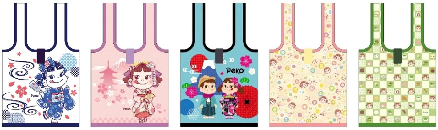 日本らしい和柄や和風のペコちゃんをデザインしたエコバッグです。