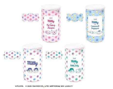 株式会社サンリオのキャラクターとミルキーがコラボした限定デザイン缶。
