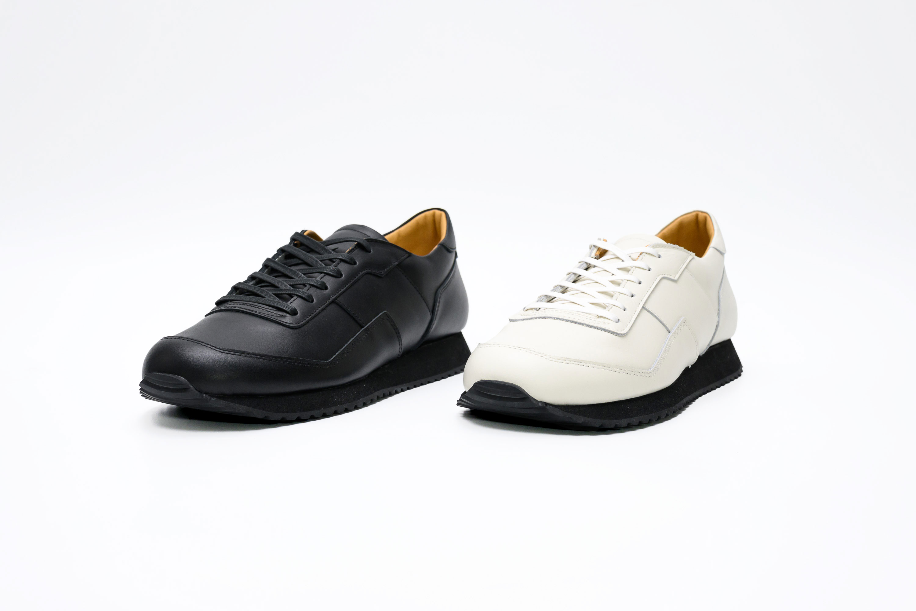 アッパーには姫路産のソフトスムースレザーを採用。しなやかさと耐久性を兼ね備え、履き込むほどに足になじみます。ライニングをキャメルにすることで上品さを加え、スニーカーでありながら革靴のような洗練された印象に。カジュアルからビジネスカジュアルまで幅広く活躍します。
