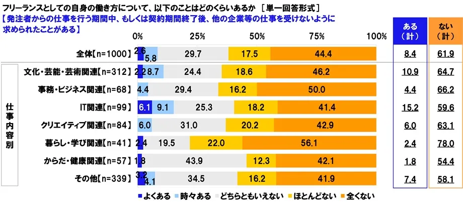 ◆「発注者からの仕事の依頼を断ることができない」フリーランスの24.1%、クリエイティブ関連では29.8%