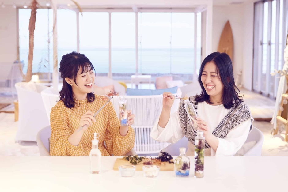 ホテル最上階の「ソラノビーチ Books&Cafe」の空間を海に見立て、まるで海の中に咲く花のように色鮮やかで美しい本物の海藻を用いた装飾で彩ります。ゆらゆらと揺らめく海藻に囲まれ、海の中でお花見をしているかのような気分を味わえる空間です。海藻をスイーツとして堪能できる本イベント限定のメニューや、海藻を使ってハーバリウムを作るアクティビティを楽しめます。