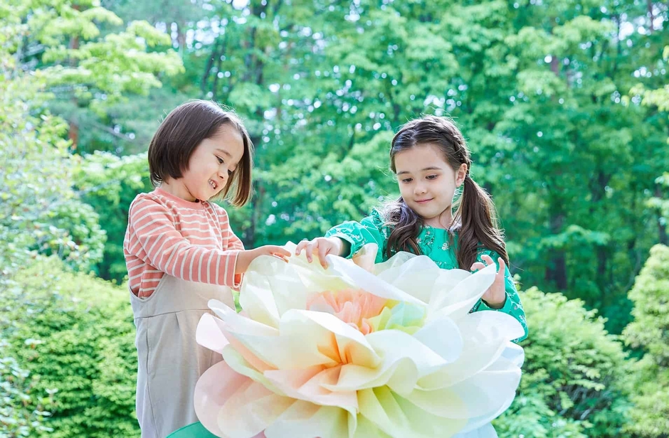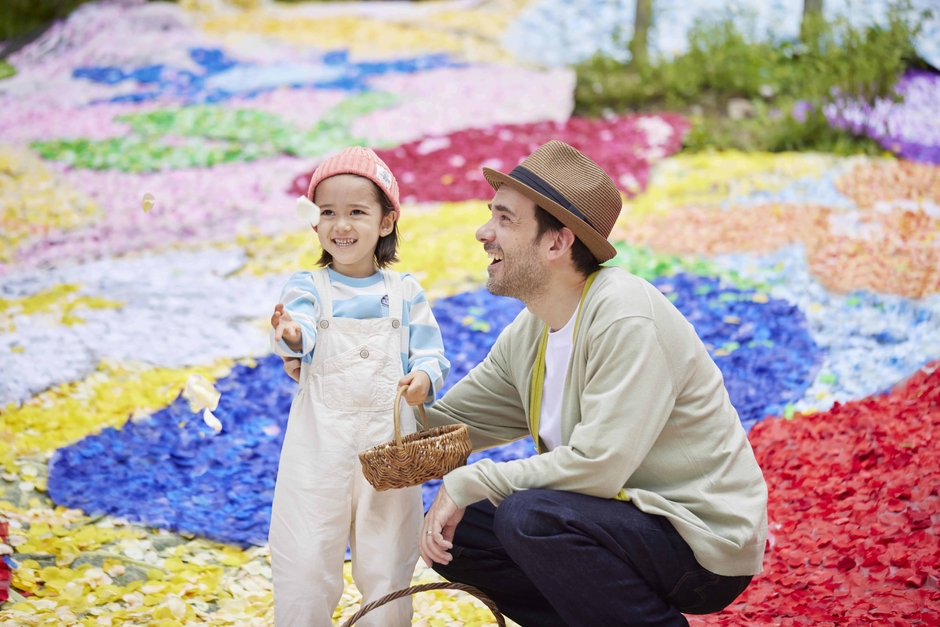 円形状の「広場」には「野菜」をテーマにしたフラワーアートが登場。まるで花畑のような空間で、ピクニックを楽しめます。また、隣接する施設「POKO POKO(ポコポコ)」内では、アクティビティ「花畑の石窯ピッツァづくり」が体験可能。さらに、宿泊ゲストが「フラワーキーパー」として、スタッフと一緒にフラワーアートを描くことができるアクティビティもあります。