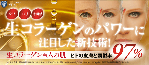 ドイツの專門メーカーが特殊な製法で製造した、ヒトの皮膚のコラーゲン組織とほぼ同等の構造を持つコラーゲンシートを使用した技術です。加齢だけでなく環境要因やストレスも影響しがちなお肌の健康を守り、内側からはじけるようなみずみずしい素肌へと導きます。