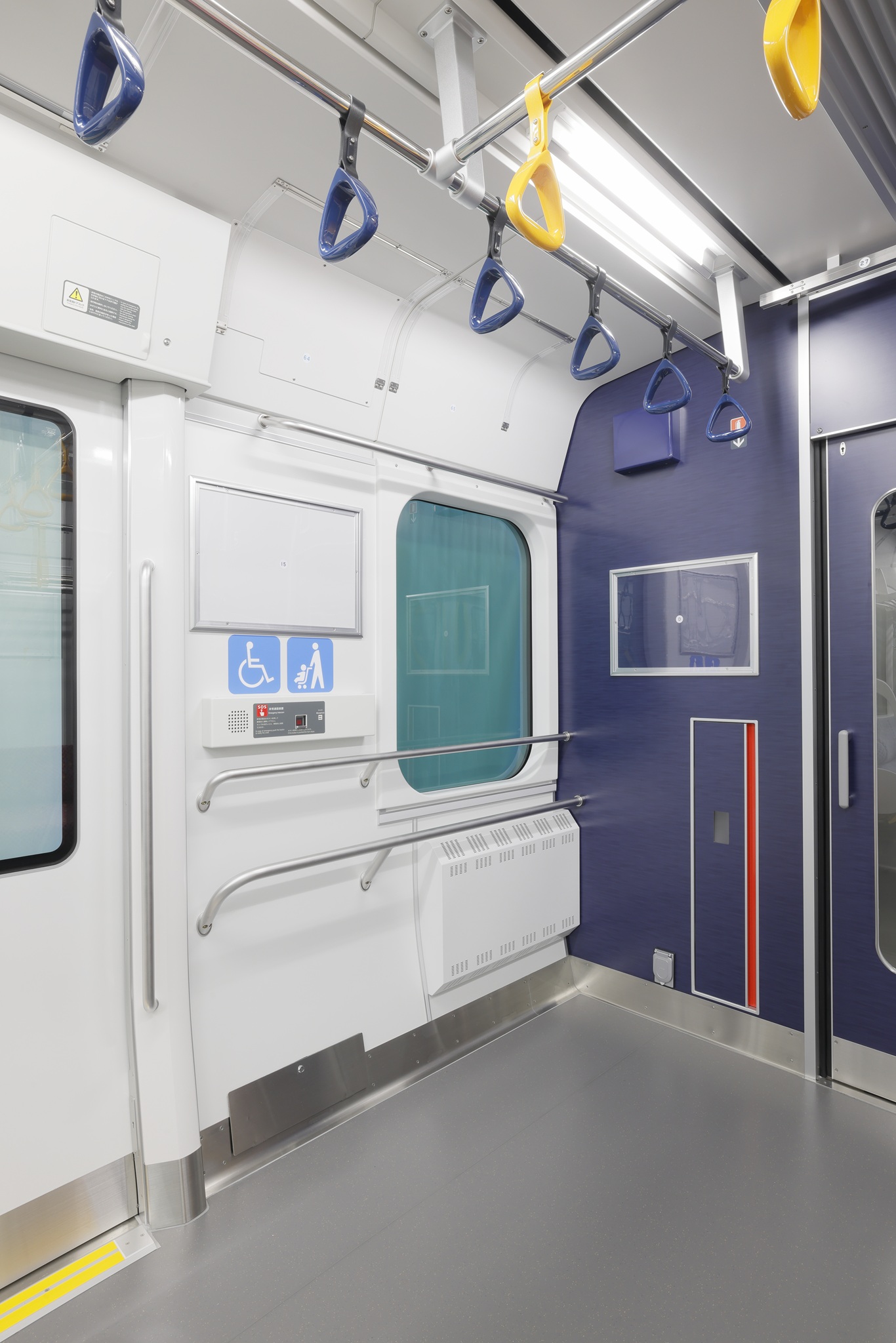 ・内装は、木目柄の妻部化粧板など『70-000形』の面影を残しながら、ホワイトを基調にグレーやネイビーでまとめて、臨海副都心の洗練された都市景観をイメージしています。