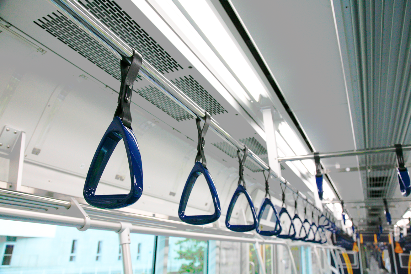 車体幅を拡げることで、混雑時の圧迫感の緩和を図りました。座席幅も同様に拡大しつつ、更に大型の袖仕切りを採用し、ご着席のお客様もより快適に。また、ドア上部に2画面の液晶ディスプレイを設置し、乗換案内や運行情報、駅設備案内などの情報をご提供。また空調装置の冷房能力も向上し、カビや花粉、菌、ニオイなどの対策機器も新たに導入。快適な車内空間の提供を目指しました。