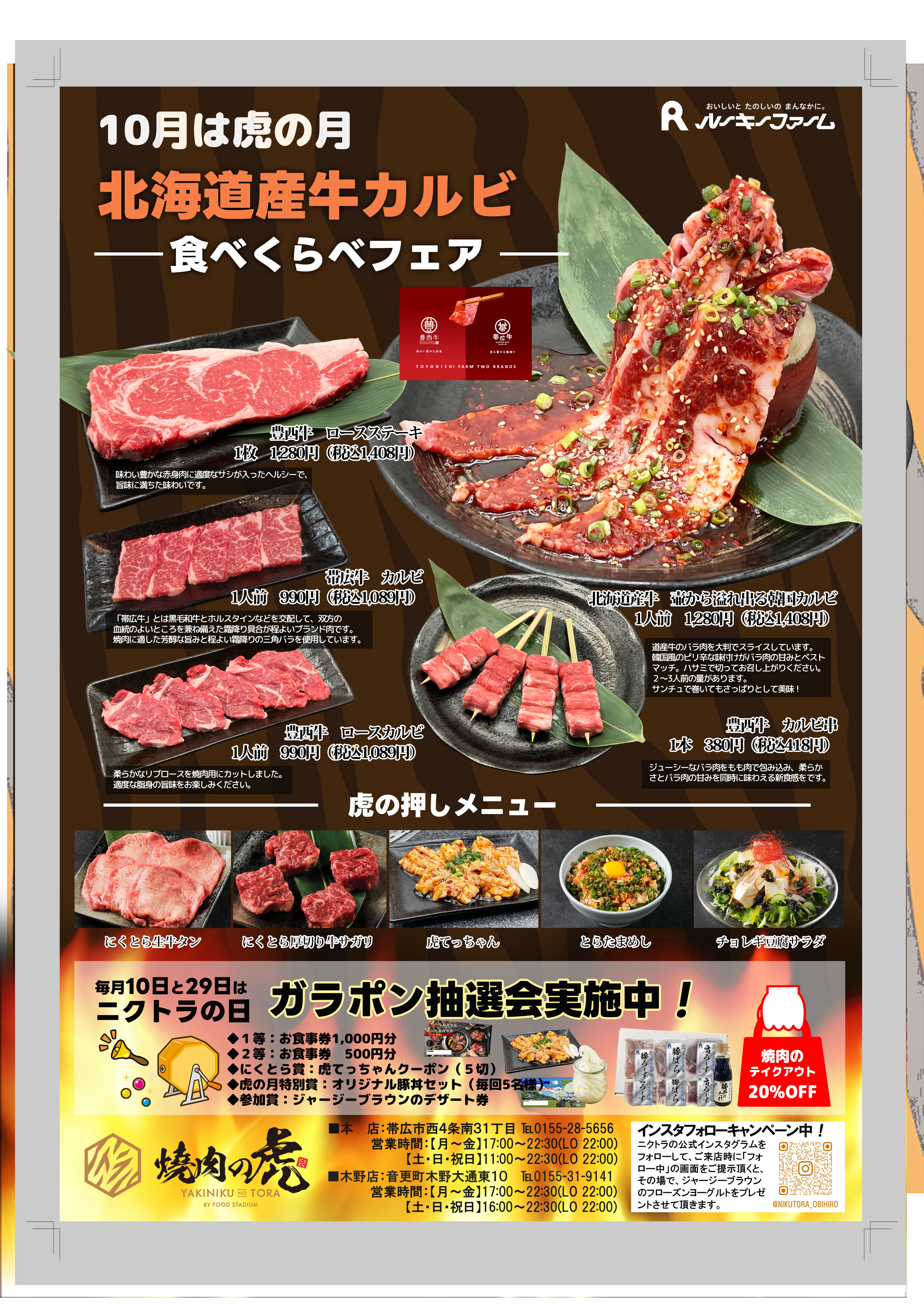 焼肉の虎HP:【公式】焼肉の虎 | 十勝・帯広の焼肉店( https://nikutora.jp/ )