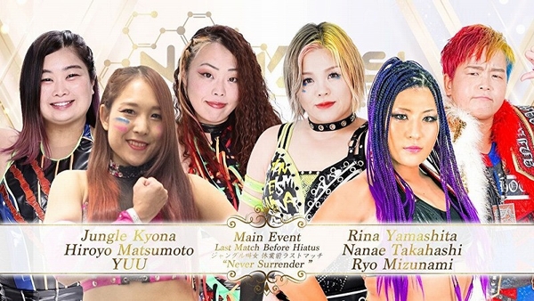 休業前最後となるフリーランスサミット『NOMADS’』新宿FACE大会が4月14日に開催されるが、叫女は休業前ラストマッチ〜Never Surrender 〜として、ジャングル叫女&松本浩代&優宇vs山下りな&高橋奈七永&水波綾のカードが決まっているだけにこの試合は見逃せない。