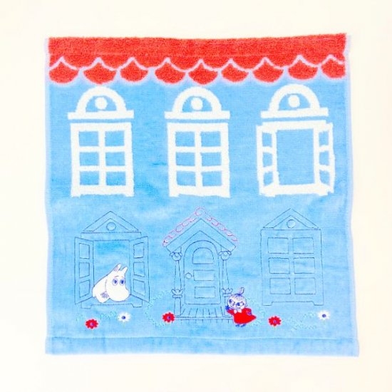こちらは、家の窓から覗くムーミンと遊びにきたリトルミィが描かれたデザインです。爽やかなブルーに、リトルミィの赤いお洋服が目立っていますね♪
