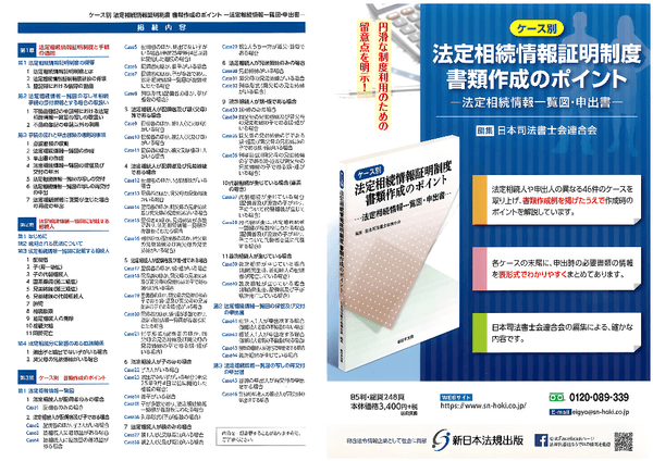 円滑な制度利用のための留意点を明示!「ケース別 法定相続情報証明制度 書類作成のポイント-法定相続情報一覧図・申出書-」好評につき少部数ながら再入荷いたしました!