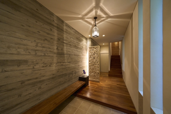 ■薪ストーブ・吹き抜け・キッチン・屋外ウッドデッキ・玄関・ペット