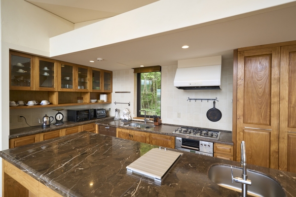 「スイートヴィラ 忍野Mt.FUJI」は、忍野八海で有名な山梨県忍野村の静かなロケーションに佇む、洗練された高級貸別荘で、リビングやバルコニー、浴室から四季折々の美しい自然と富士山の絶景が心ゆくまでご堪能いただけます。室内は4LDKの広々とした空間で、高原のリゾートらしいデザインを取り入れた自然を感じさせる温かみのあるインテリアを配置し、最大7名様までの宿泊が可能。さらにペット同伴の宿泊も可能で、愛犬・愛猫を連れて“家族”揃って自然の中で過ごす休日をお楽しみいただけます。リビングスペースでは、冬季にオプションとして薪ストーブを利用することができ、非日常的な空間を演出します。リビングから繋がるバルコニーは、広大な自然と富士を見晴らす景色を眺めながらのBBQがプライベートで楽しめます。