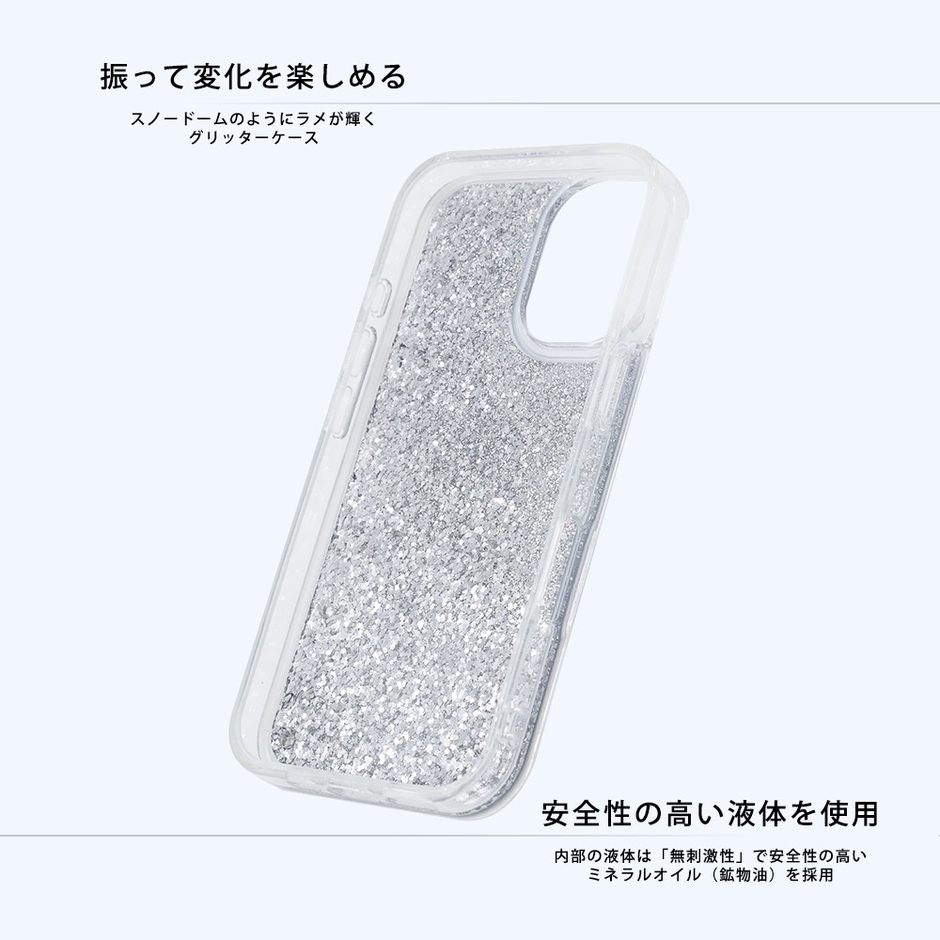 ボタンや端子周りまで精密に保護。安全性の高いミネラルオイルでスノードームのようにキラキララメが流れるスマホケース。