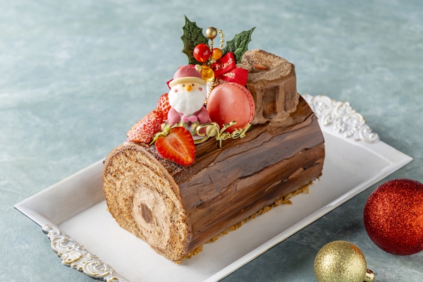 チョコレートを存分に堪能できる、こだわりのブッシュ・ド・ノエル。口どけの良いチョコレートスポンジで丁寧に巻き上げたのは、一度生チョコレートを作ってからクリームでのばしたなめらかなミルクチョコレートクリーム。そして切り株の芯の部分には、さらに濃厚なダークチョコレートの生チョコレートを忍ばせました。デコレーションには、甘さ控えめでビターなダークチョコレートクリーム。内側と外側で異なる2種類のクリームを使い分けることで、一口食べればミルクチョコレートのまろやかな甘さとダークチョコレートの奥深い香りが口いっぱいに広がる、まさにチョコレート好きにはたまらない一品です。