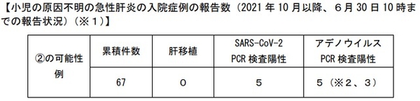 出典: 厚生労働省 小児の原因不明の急性肝炎について