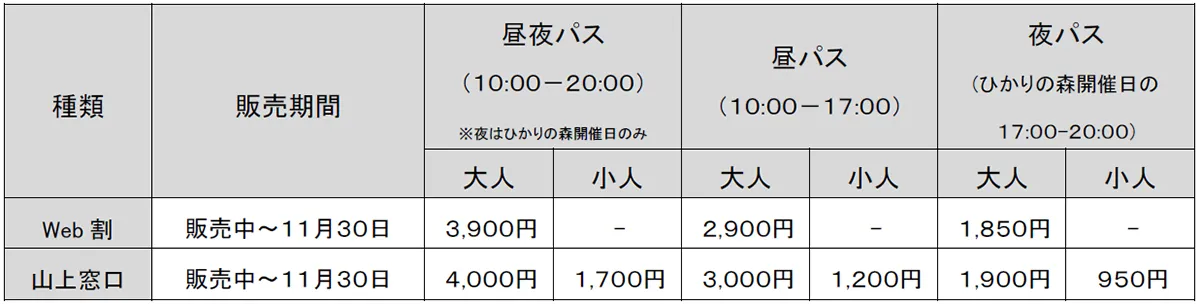※大人=中学生以上、小人=4歳~小学生、3歳以下無料