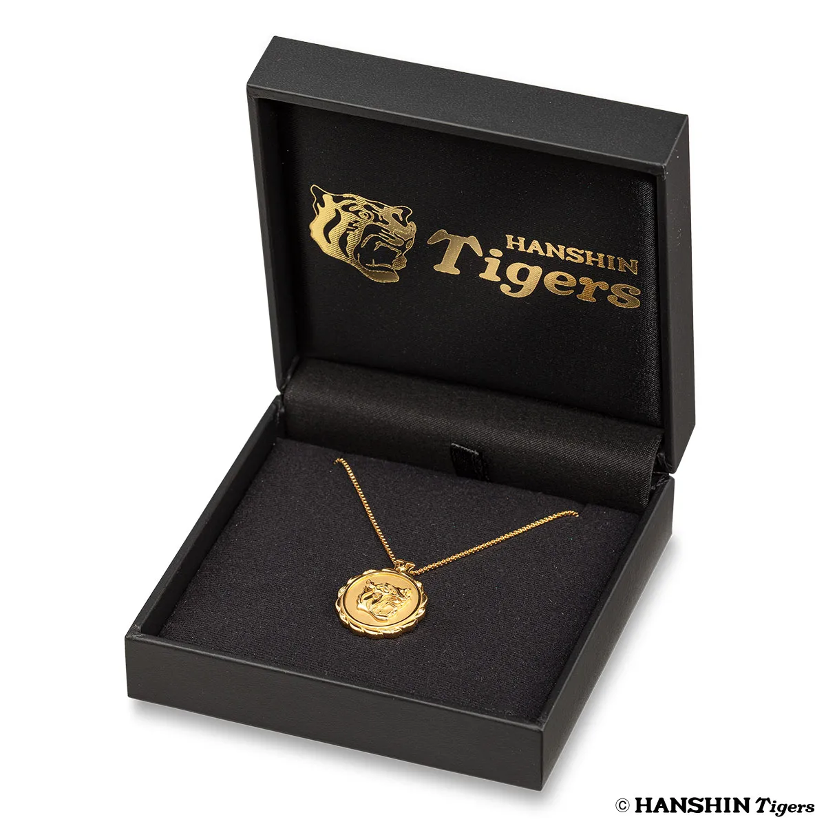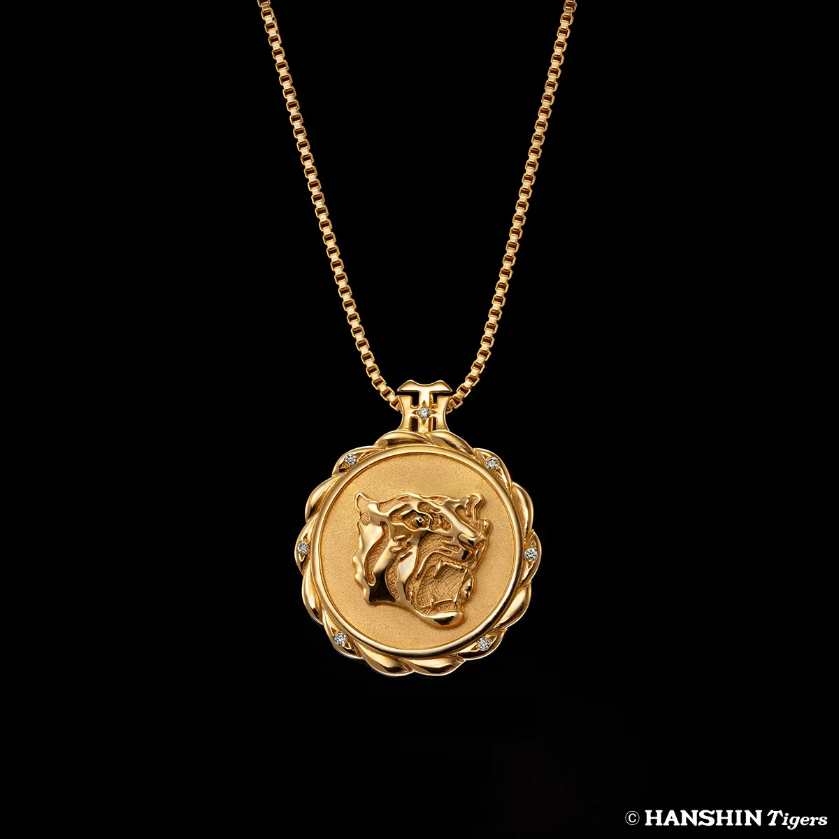 黄金に輝くペンダントトップには、立体的な凹凸(レリーフ)でタイガースの「虎」のロゴを表現。