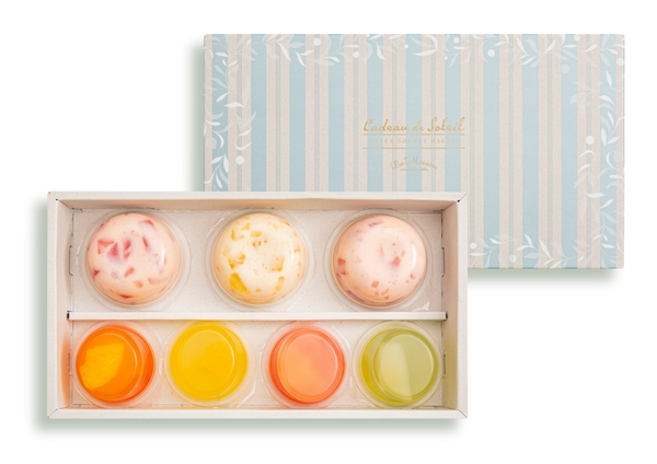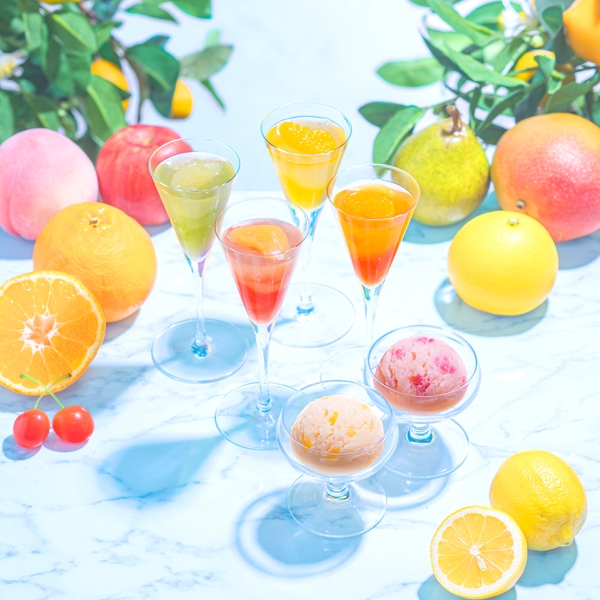 国産フルーツのピューレをさっぱりとしたヨーグルト味で仕上げた、爽やかな味わいのソルベと、国産フルーツを使用した2層仕立てのジュレのアソートセット。夏の贈り物におすすめです。