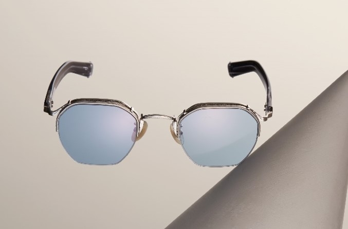 特徴的な多角形シェイプや二重構造のフロントデザインが柔らかな光の遊びを演出。トレンドのブルーやグレーのライトカラーレンズを採用。