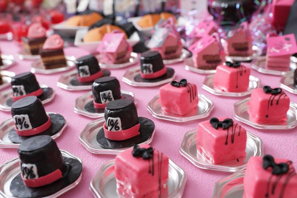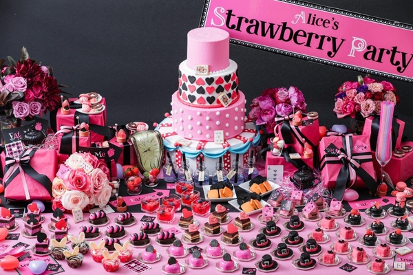 愛知県の緊急事態宣言解除に伴いイベント開催期間延長決定 お客様毎のテーブルにスイーツが並ぶ“NO密”卓上ブッフェ!ピンク×ブラックのキュートなスイーツ達 『アリスのストロベリースイーツパーティー~PINK & BLACK~』