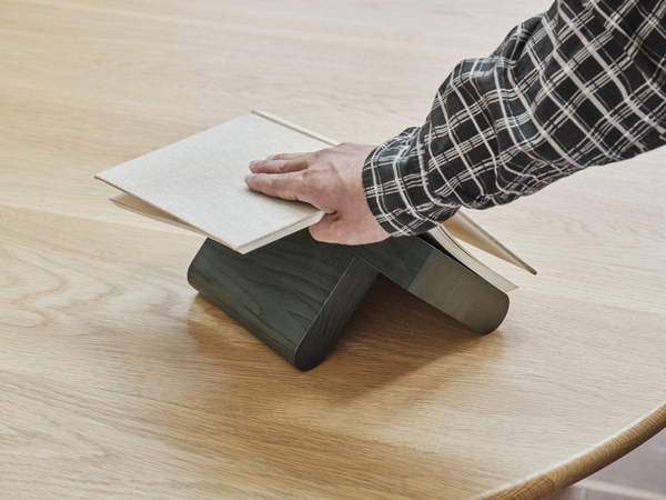 文庫本や学術書サイズの本が重なり合ったような形状は、書籍やアートブックを安定して支えるだけでなく、横置きにすることで読みかけの本を置けるブックレストとしても活用できます。