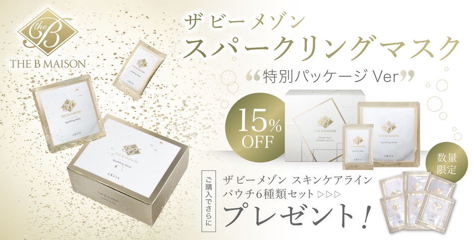 美容の業務用用品や専門商材を格安で卸販売する通販サイトの「美セラ」(運営会社:株式会社イントゥ)は、8月30日(水)から、「ザ ビー メゾン(THE B MAISON)」のサロンクオリティ炭酸パック「スパークリングマスク」の特別パッケージを15%オフで販売いたします。さらに、数量限定でご購入いただいた方に「スキンケアライン パウチ6種類セット」をプレゼントいたします。