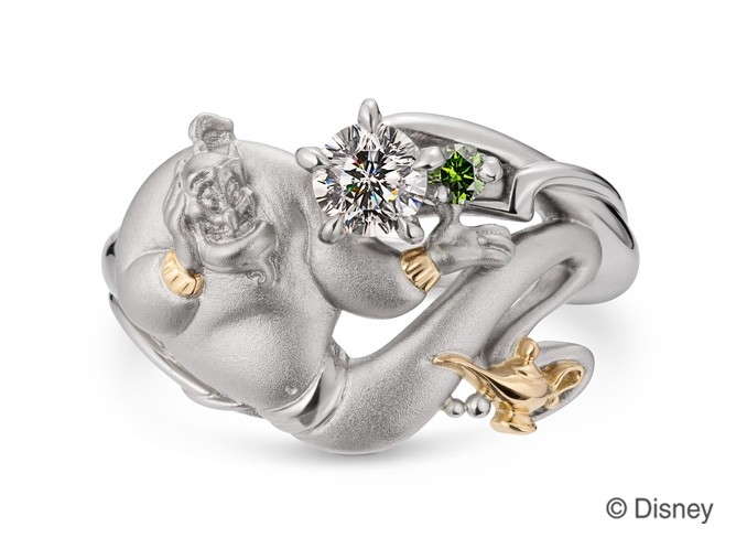 「ジーニー」の特徴的な丸みのあるフォルムを立体的に表現。マット加工と鏡面仕上げを組み合わせたり、腕輪とランプをゴールドにするなど細部まで作りこんでいます。