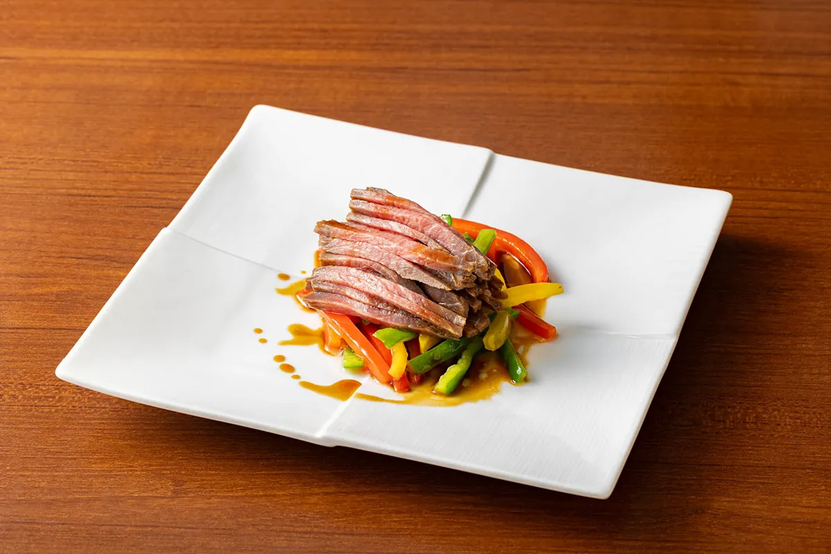 「梅香メイシャンプロデュースドバイ 梅の花」あか牛ローストビーフの青椒肉絲