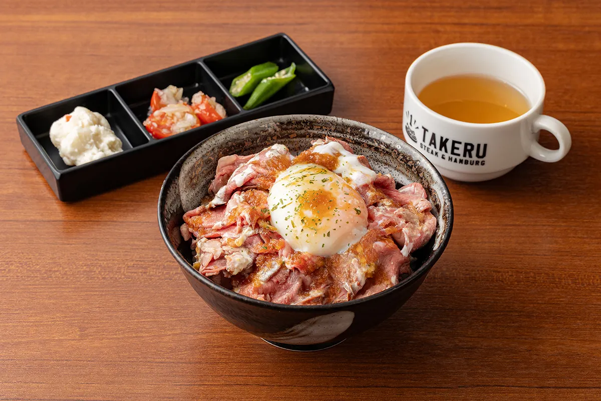 「1ポンドのステーキハンバーグ タケル」あか牛ローストビーフ丼