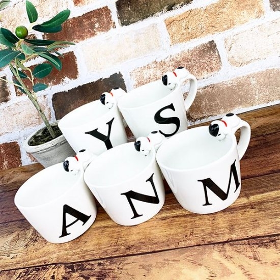 イニシャルマグも大人気です♪しかもスヌーピーのフィギュア付きなのでとってもキュート♡