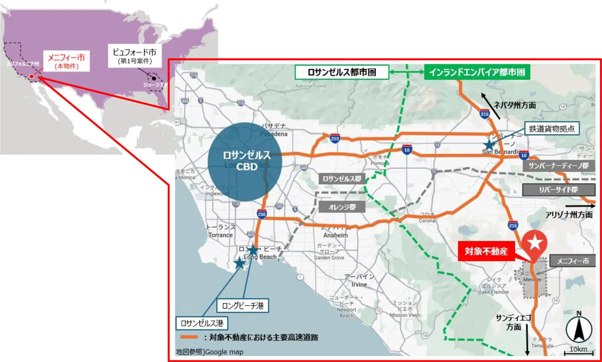 阪急阪神不動産株式会社は、今般、当社の100%子会社である現地法人“Hankyu Hanshin Properties USA LLC”(以下、「HHPUSA」)を通じて、カリフォルニア州ロサンゼルス郊外のインランドエンパイア都市圏(以下、「IE都市圏」)※1のメニフィー市において、物流不動産開発事業(以下、「本事業」)を実施することになりましたので、お知らせします。