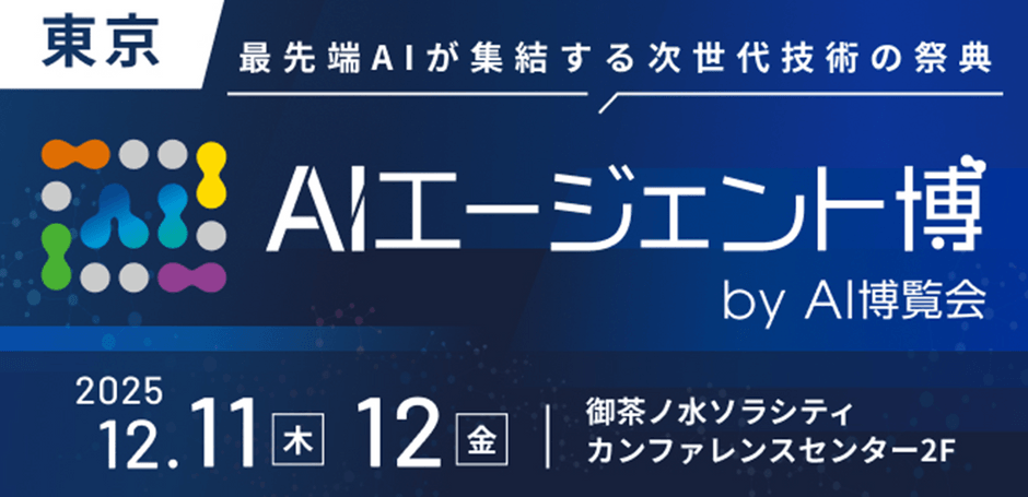 【AIエージェント博 by AI博覧会】12/11-12 東京・御茶ノ水ソラシティで開催!~最先端AIが集結する次世代技術の祭典~