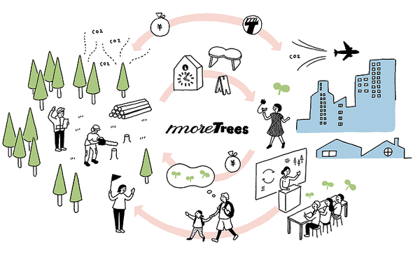 地域との協働で森林保全を行う「more treesの森」の展開、国産材を活用した商品やサービスの企画・開発、セミナーやイベントを通じた森の情報や魅力の発信など、「都市と森をつなぐ」をキーワードに「森と人がずっとともに生きる社会」を 目指した、さまざまな取り組みを行っています。