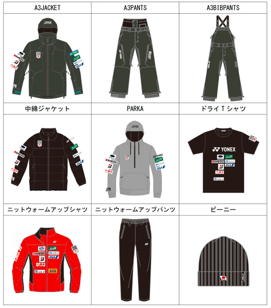 フリースタイルスキー・スノーボード日本代表”SNOW JAPAN”提供ウェア一覧