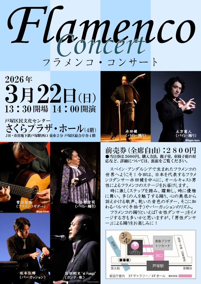 ヒラルディージョ事務局主催、「『Flamenco Concert』~フラメンコ・コンサート~」が2026年3月22日 (日)に横浜市戸塚区民文化センター さくら プラザ・ホール(横浜市戸塚区戸塚町16番地17)にて開催されます。 チケットはカンフェティ(運営:ロングランプランニング株式会社、東京都新宿区、代表取締役:榑松 大剛)にて発売中です。