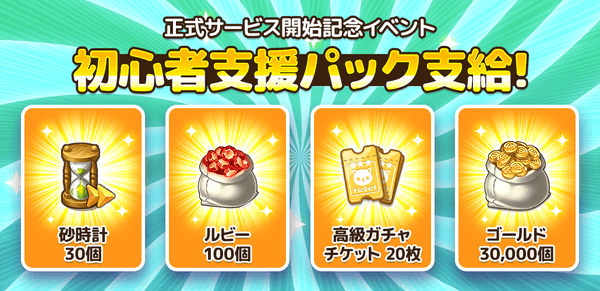 ・イベント報酬:砂時計30個、ルビー100個、高級ガチャチケット20枚、30,000ゴールド