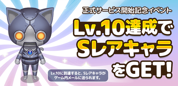 イベント期間中に、プレイヤーレベル10を達成すると、『ロボにゃん』を獲得できます。