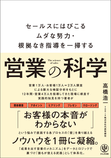 株式会社かんき出版(本社:千代田区 代表取締役社長:齊藤龍男)は、『営業の科学 セールスにはびこるムダな努力・根拠なき指導を一掃する』(高橋浩一/著)を2024年4月11日より全国の書店・オンライン書店等(一部除く)で発売いたします。