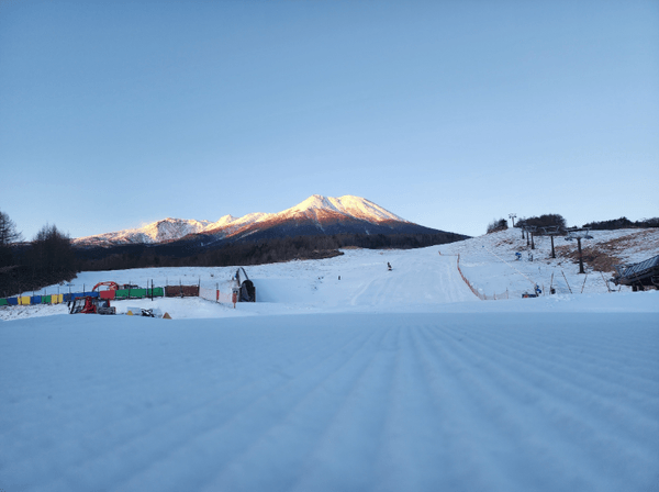 開田高原は標高が高く、気温が低いため雪質抜群。天気がいい日には御嶽山の素晴らしい景色も楽しめ、滑走だけでなくロケーションの良さでも注目を集めています。