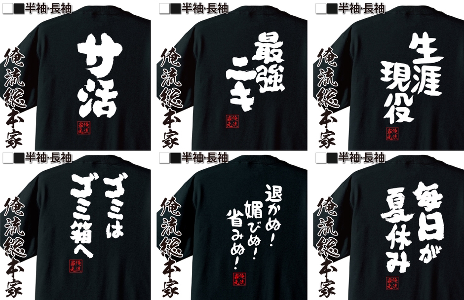 これらのTシャツは、着るだけで周囲の注目を集め、どんな困難にも負けず、笑顔で乗り越える力を持つことを促します。俺流総本家のTシャツは、毎日を少しでも楽しく、力強く過ごすためのパートナーです。この機会に、ユーモア溢れるTシャツで笑顔を広げましょう。