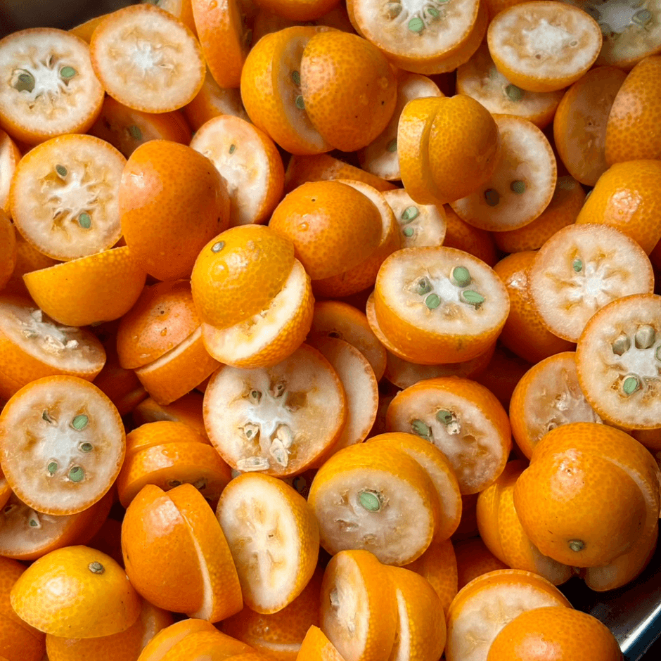 メニューを考案した学生の一人が小麦アレルギーであることをきっかけに、「同じアレルギーやグルテンフリーなどで小麦を避けている人でも楽しめるお菓子を」という思いから米粉のメニューが作られました。旬の金柑を使ったその時期ならではの風味をお楽しみいただけます。