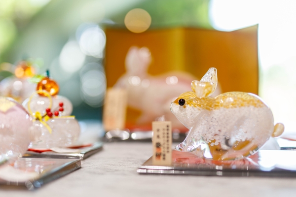 毎年大人気のガラスの鏡餅や、2023年の干支であるうさぎのオブジェなど、自分用にも、贈り物にもぴったりのアイテムがずらりと並びます。手のひらサイズの作品が多いので、日常生活に縁起物を気軽に取り入れることができます。