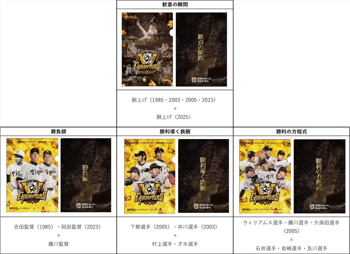 リーグ優勝の原動力となった監督・選手と歴代V戦士の勇姿が刻まれた、限定クリアファイルを手に入れて、日本一へと突き進む阪神タイガースを応援しましょう!