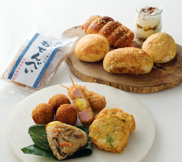 アルファ米を使用した煎餅やパン、企業で備蓄されていたツナ缶を活用したさつま揚げのほか、カンパンを利用したスイーツ商品など約 15 品