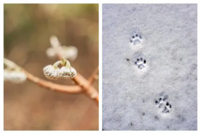 六甲山の山頂近くにあるSIKIガーデンでは、神戸市街地より気温が約5℃低く、神戸では珍しい雪景色が観られる日もあります。葉を落とす広葉樹や春を待つ木々のつぼみ、冬鳥の活動、野生の小動物の痕跡(フィールドサイン)など、六甲山ならではの豊かな自然の冬の姿を間近に感じられます。(ガーデン面積16,010.77平方メートル)