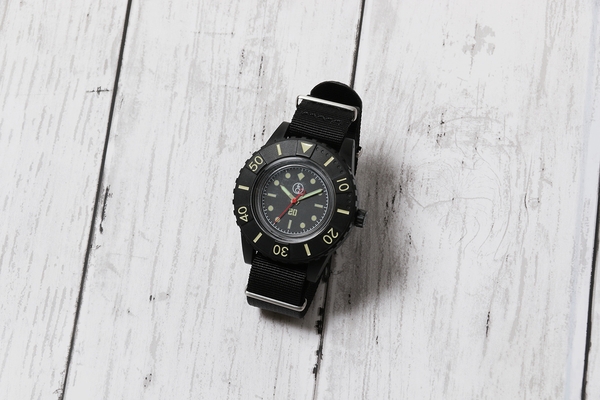 「Q&Q Smile(スマイル)Solar(ソーラー)」シリーズは、マリンスポーツにも装着できる20気圧※1というタフな防水性でありながら、軽量な仕様が人気の高機能なソーラー時計です。今回の初コラボでは、ビジネススタイルのカジュアル化に合わせ、ザ・スーツカンパニーのメイン客層である20代~30代のビジネスパーソンに向けて、ビジカジにもコーディネートできるデザインに仕上がっています。ビンテージ時計をモチーフとした文字盤デザインには、針や目盛(インデックス)に経年変化での色あせを表現したオフベージュに加えて、マットブラックを基調とした極太ベゼル※2とNATO(ナトー)タイプベルト※3を採用しています。ミリタリーテイストながら落ち着きのあるデザイン性と、アウトドアにも取り入れていただける高機能性により、ビジネスからアウトドアまで着用いただけます。